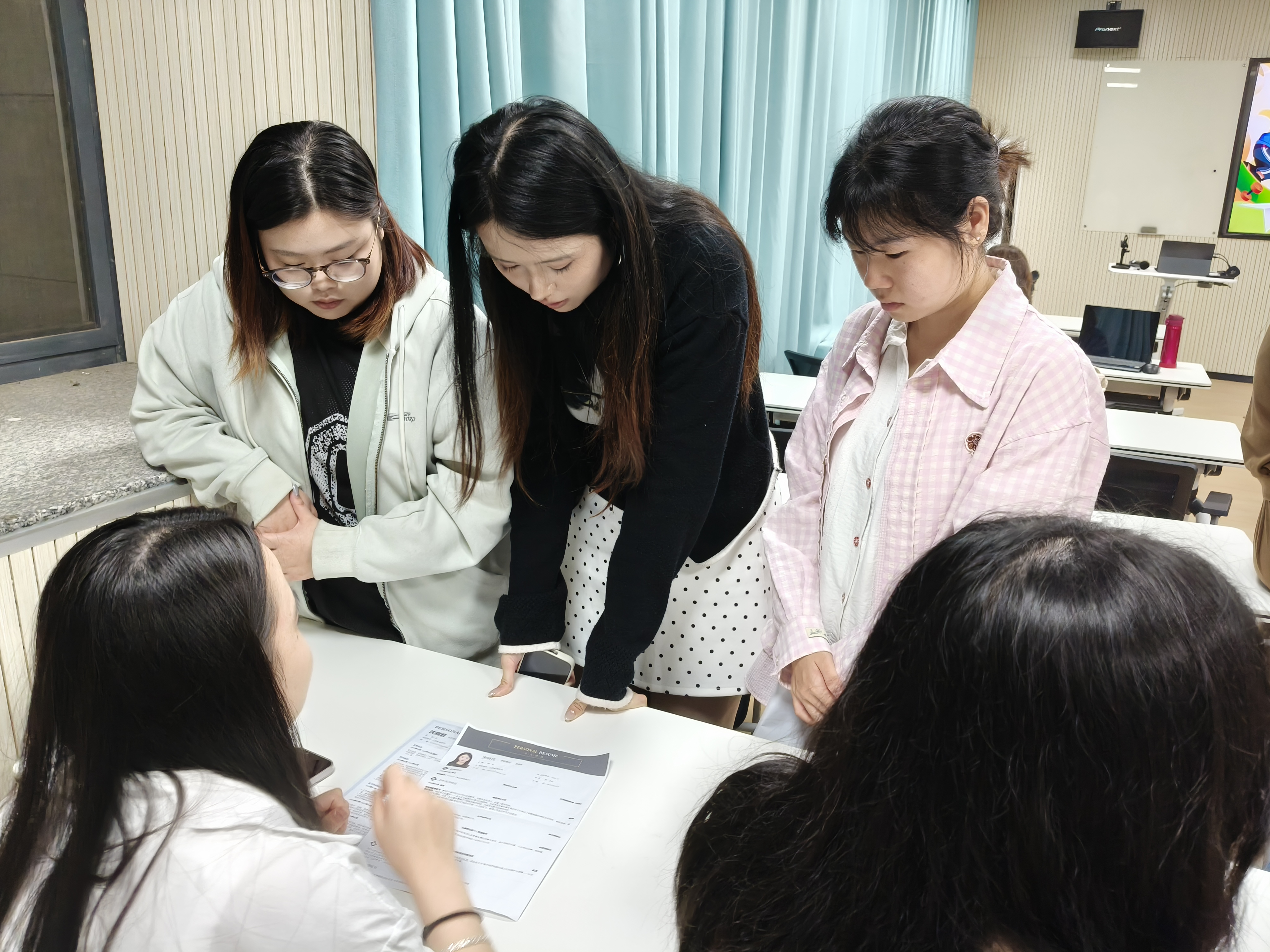分享会的最后,现场进入互动答疑环节。各位同学积极地将自己的简历递给卢校长及到场的HR老师,寻求修改意见,梳理求职思路,积累求职经验,为本次活动画上圆满的句号。