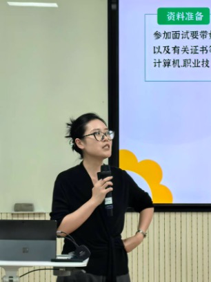 简历制作环节,卢校长也给出了实用的建议,她结合优秀简历展示,详细讲解了简历应包含的内容,为同学们制作简历提供清晰指导。