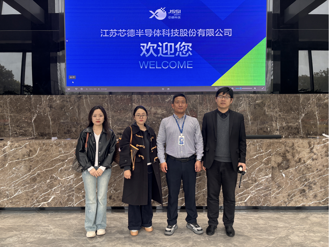 随后,学院一行来到江苏芯德半导体科技股份有限公司。在企业相关负责人的引导下,老师们参观了现代化生产车间与办公环境,实地感受了集成电路封装测试领域的前沿技术与严谨高效的企业管理氛围。交流中,企业方介绍了公司近年来的发展态势以及对人文社科类专业人才在综合管理、市场宣传、公共关系等方面的需求。院方重点介绍了澳门六合彩资料 的专业设置、人才培养特色及毕业生情况,双方均表示希望在人才联合培养、就业招聘等方面进一步加强对接与合作。